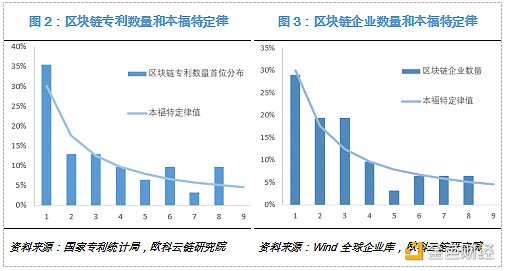 本福特定律也适用于区块链行业的一些数据,如区块链企业数量、专利数量、公司财务数据等。此外,区块链技术本身数据透明、不可篡改的特点有助于维护数据的真实性。并且对比了一组实际数据发现,从本福特定律的视角,链上数据的首位分布是合理的。